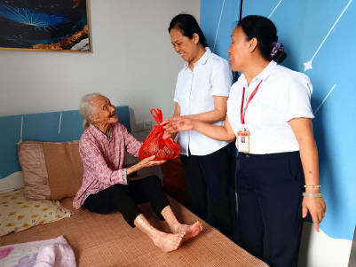 活動中,燕興集團第三黨支部、物業(yè)服務(wù)中心等工作人員走訪慰問了小區(qū)高齡老人,給他們送去關(guān)懷與問候。