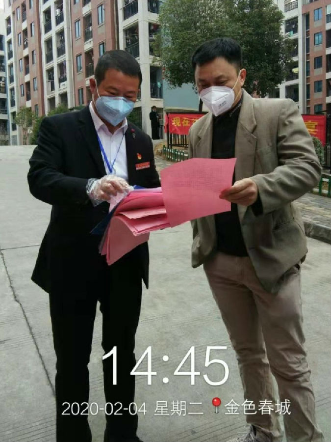 防控疫情是一場阻擊戰,也是一場全民行動,需要每個人自覺投入其中。接到抗擊疫情指示后,劉國華立即放棄假期返回工作崗位。為守住陽光·金色春城小區居民生命防線,他嚴格遵守作息,沖在防疫第一線,為同事做表率。