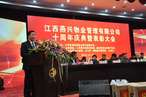 2013年12月26日下午2時,參加燕興物業成立十周年慶典表彰大會的領導、嘉賓和員工們已陸續來到贛州賓館一號會場,在嘹亮的國歌聲中大會由吉安商會會長劉振德宣布開始。