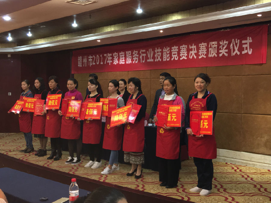 2017年10月27日上午,贛州市2017年家庭服務(wù)行業(yè)技能競(jìng)賽決賽頒獎(jiǎng)儀式在香江灣國(guó)際酒店三樓紫荊廳隆重舉行,江西燕興物業(yè)管理有限公司員工曹運(yùn)莉獲得“嬰兒護(hù)理組”第一名的表彰,舒靜和肖瓊玲分別獲得“家政服務(wù)員組”第一名和第三名的表彰,燕興物業(yè)公司還榮獲“團(tuán)體優(yōu)勝獎(jiǎng)”,展示了燕興人具有的“匠人精神”和專業(yè)能力。