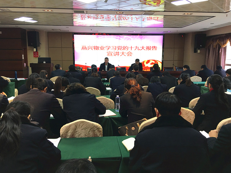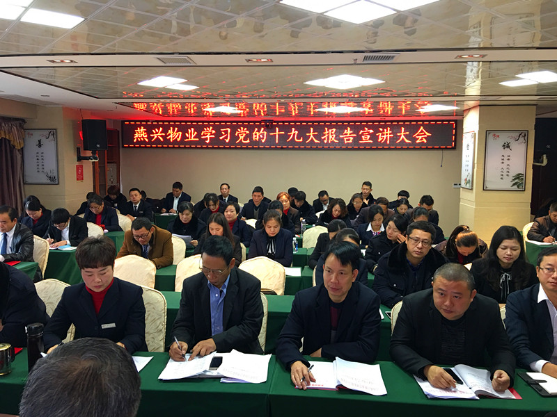 2017年11月25日上午,燕興物業召開學習黨的十九大報告宣講大會,學習宣傳黨的十九大會議精神,燕興物業黨支部書記、總經理劉南斗主持會議并做題為《堅持黨對一切工作的領導》的主題宣講。公司領導和中心城區項目黨員及項目服務中心主任參加了大會,公司駐外縣(市)各分公司黨員和中層以上管理干部利用公司視頻會議系統參加了大會。