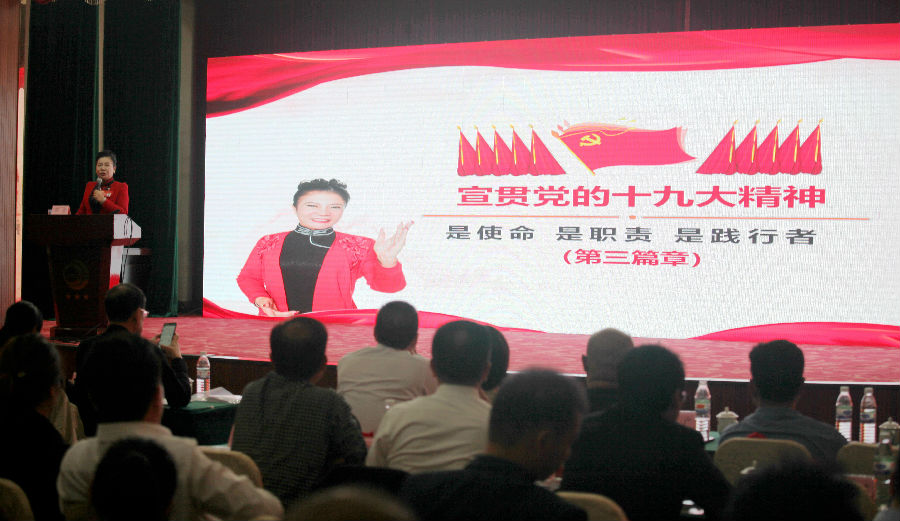 報(bào)告會(huì)上,薛榮生動(dòng)地講述了自己創(chuàng)業(yè)的過(guò)程及黨建引領(lǐng)企業(yè)發(fā)展的過(guò)程;講述了如何從下崗職工成長(zhǎng)為擁有近5萬(wàn)名員工的老板;講述著她赴北京參加19大的所見(jiàn)所聞所歷;講述了黨的歷次代表大會(huì)鮮為人知的經(jīng)歷;講述了她四次被習(xí)總書(shū)記接見(jiàn)的感動(dòng);最后以深情的詩(shī)朗誦《我是黨的女兒》,表達(dá)著對(duì)黨的熱愛(ài)之情,結(jié)束了此次精彩的宣講十九大演講。