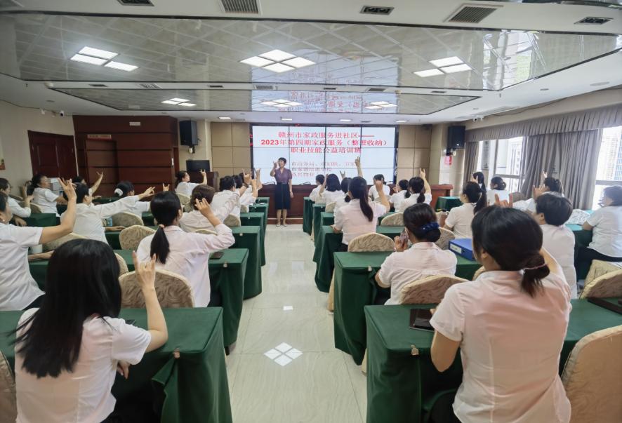 為進(jìn)一步豐富廣大女職工業(yè)余生活,提高整理收納技能,打造溫馨治愈的生活環(huán)境,提升家居幸福感。8月17日上午,由市商務(wù)局、市婦聯(lián)、市家協(xié)主辦,燕興物業(yè)承辦的贛州市家政服務(wù)進(jìn)社區(qū)2023年第四期家政服務(wù)(整理收納)職業(yè)技能公益培訓(xùn)班于在燕興物業(yè)大會(huì)議室舉辦。公司各部門及贛州中心城區(qū)女性職工近50余人參加了培訓(xùn)。本次培訓(xùn)班由鴻運(yùn)家政高級(jí)培訓(xùn)講師楊小梅主講。