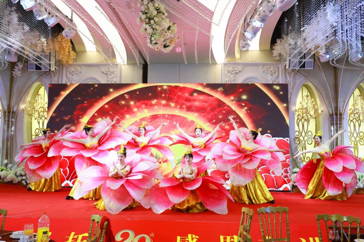晚宴有各子公司選送的精彩歌舞表演,還有總公司員工代表表演的保安形象展示和物業禮儀操,美輪美奐的佳肴與精彩紛呈的演出交相輝映,為嘉賓們呈現了一場視聽盛宴。歌手們的天籟之音、舞者們的曼妙舞姿以及精湛的演藝水平贏得了現場觀眾的陣陣喝彩。激動人心的抽獎環節和紅包環節更是讓幸運兒們收獲了豐厚的禮品和美好的祝福。