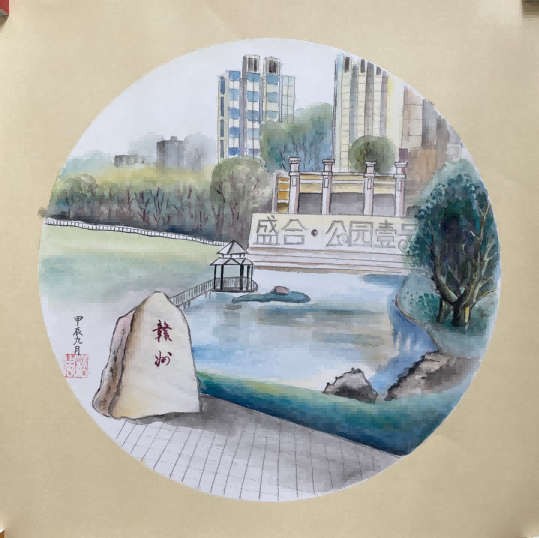 手繪盛和·公園壹號小區風貌一角