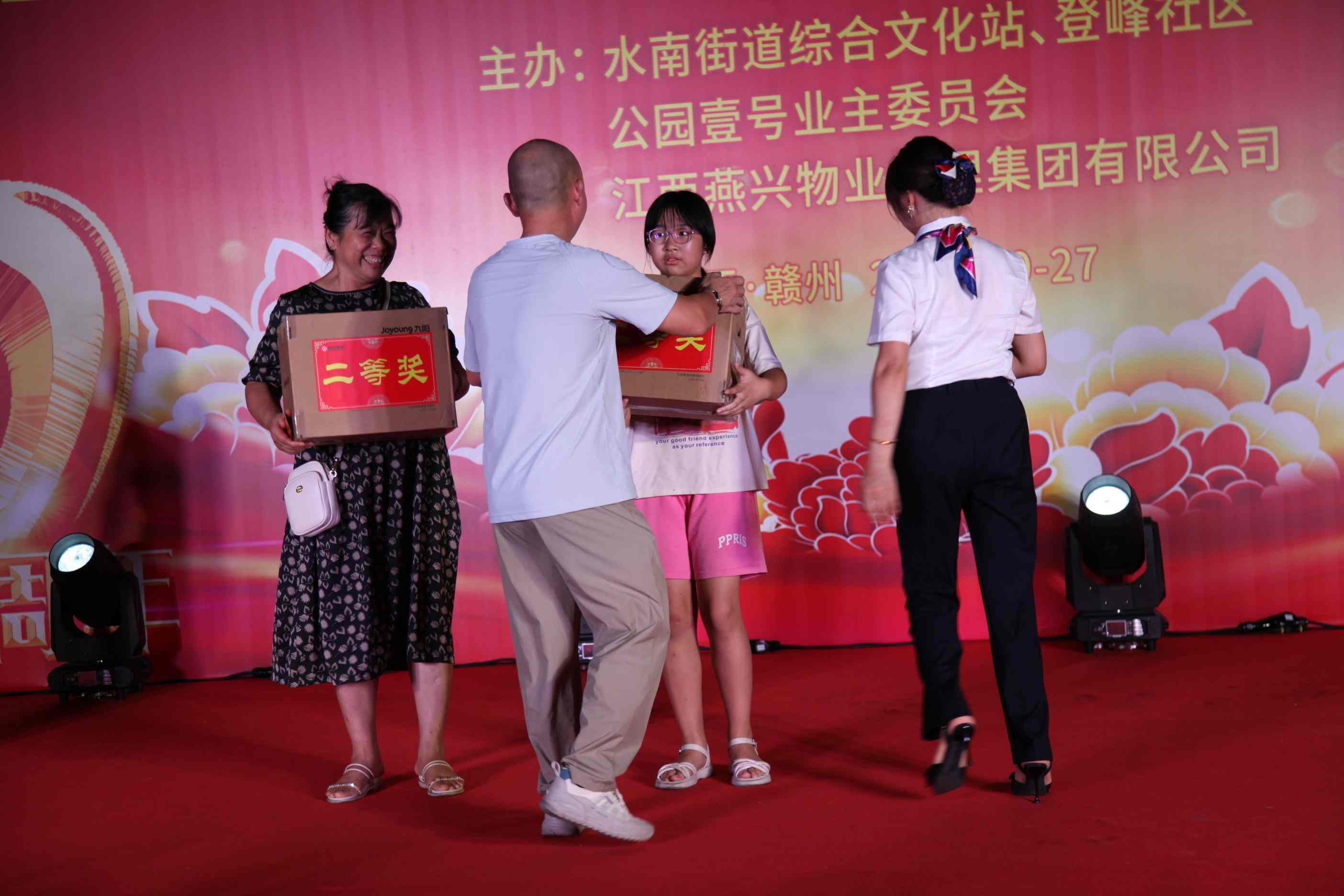 接著由小區(qū)舞蹈隊、社區(qū)藝術團體、燕興物業(yè)保安等共同帶來的架子鼓、舞蹈、詩歌朗誦等12個精彩節(jié)目輪番上演,充分展現社區(qū)濃厚的文化氛圍與蓬勃活力。活動中,小區(qū)婦委會聯(lián)合小區(qū)業(yè)委會對小區(qū)涌現的孝老愛親、睦鄰友好等“模范家庭”進行表彰,樹立鄰里和諧的榜樣。隨后的多輪互動抽獎環(huán)節(jié),歌曲歌唱祖國把現場氣氛推向高潮。