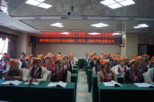 燕興物業2013年家政工程一般家政員培訓班開班了!上圖:區商務局有關領導參加開班儀式上圖:家政學員在認真聽課上圖:家政學員上課 2014-10-14