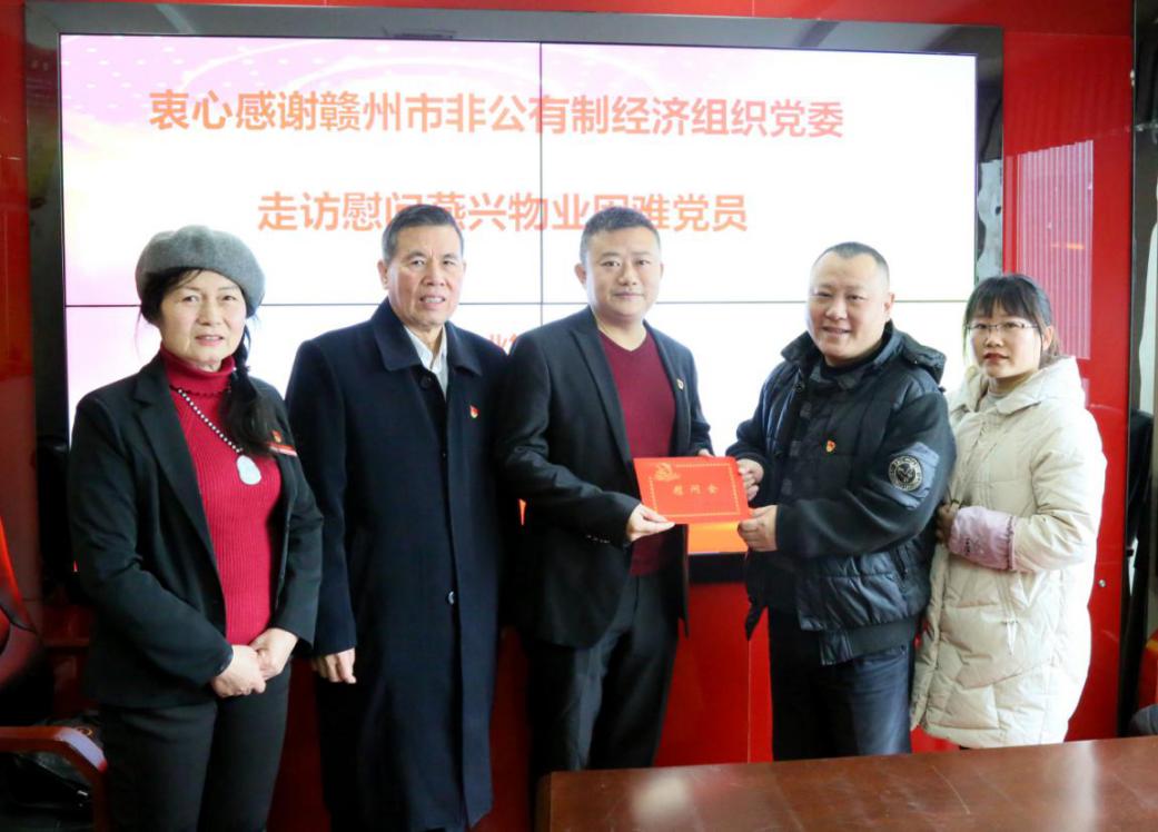 2020年1月19日上午,贛州市非公黨委黨組成員、市工商聯秘書長葉昊一行,帶著上級黨組織和市非公黨委的關懷,來到江西燕興物業管理集團黨委,走訪慰問生活困難的基層黨務工作者童章杰同志,向他送上新年的祝福及... 2020-01-22